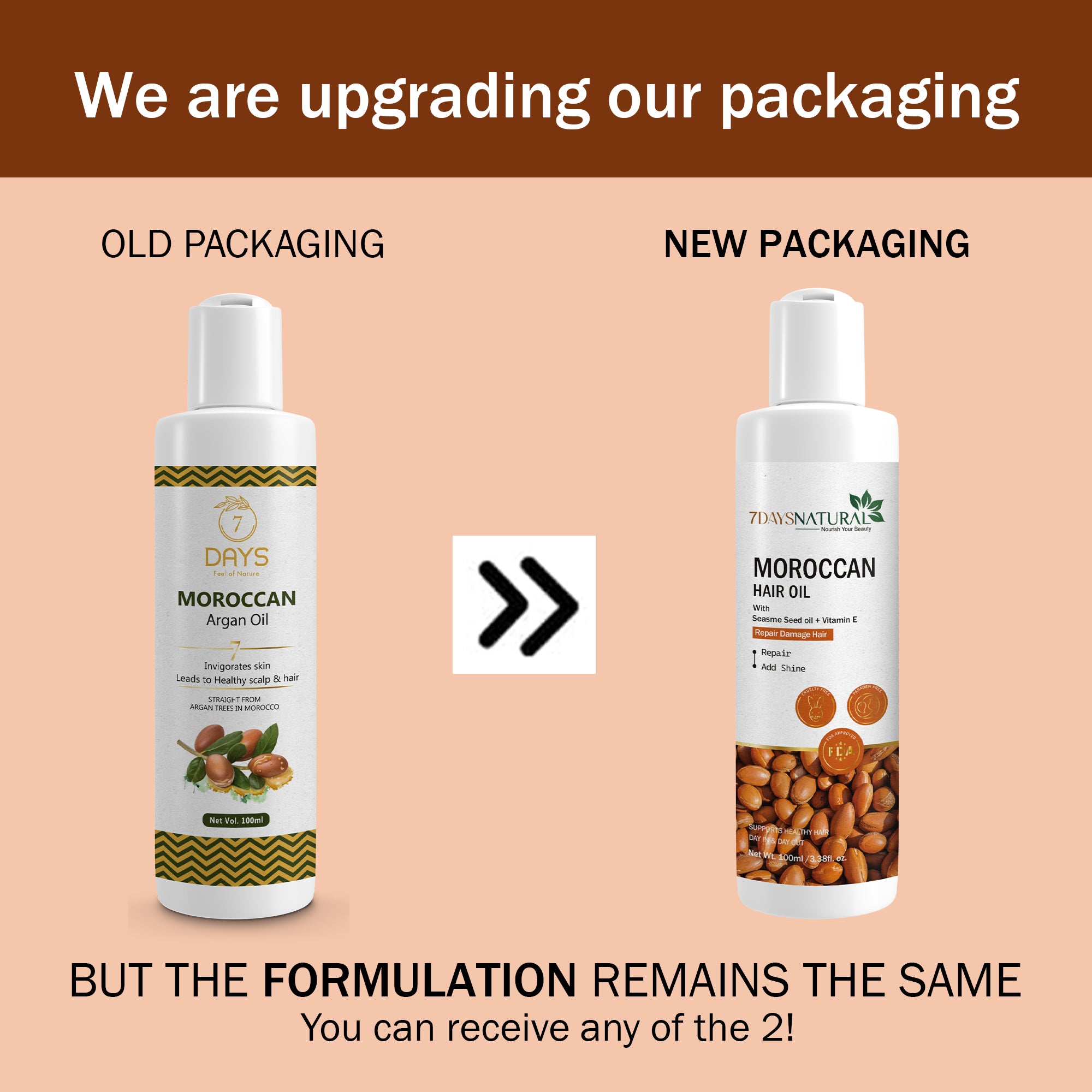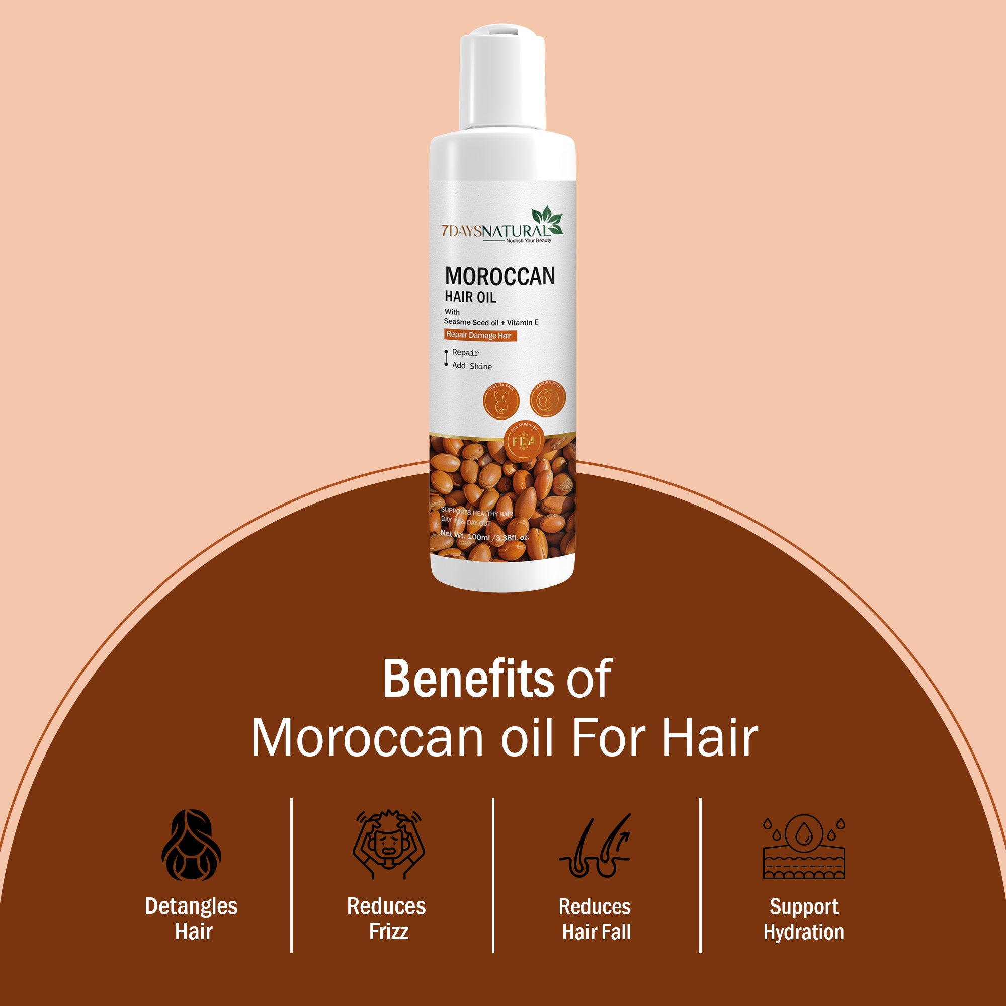 7 Days Natural Moroccan Oil Help you for all-in-one solution for intense hydration, rejuvenation, and protection. Enriched with natural ingredients, including the potent combination of castor oil, sunflower oil, and sesame seed oil, "7 Days Moroccan Oil" delivers unparalleled nourishment. Its unique formulation is crafted to penetrate deeply, ensuring maximum benefits for both skin and hair.