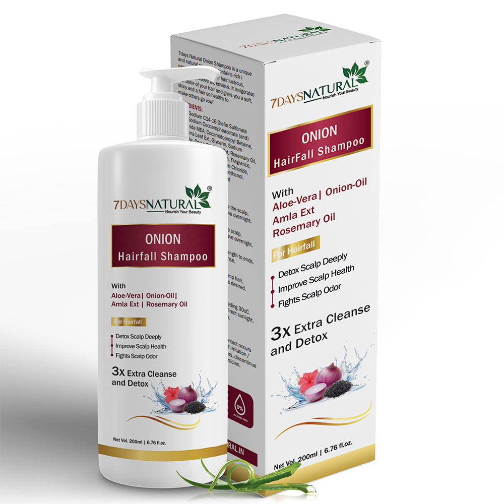 7Days Natural Red Onion Black Seed Oil Hair Growth Shampoo helps combat a number of hair problems. Onion oil is rich in Sulphur, potassium & antioxidants. It reduces hair fall & accelerates hair regrowth.